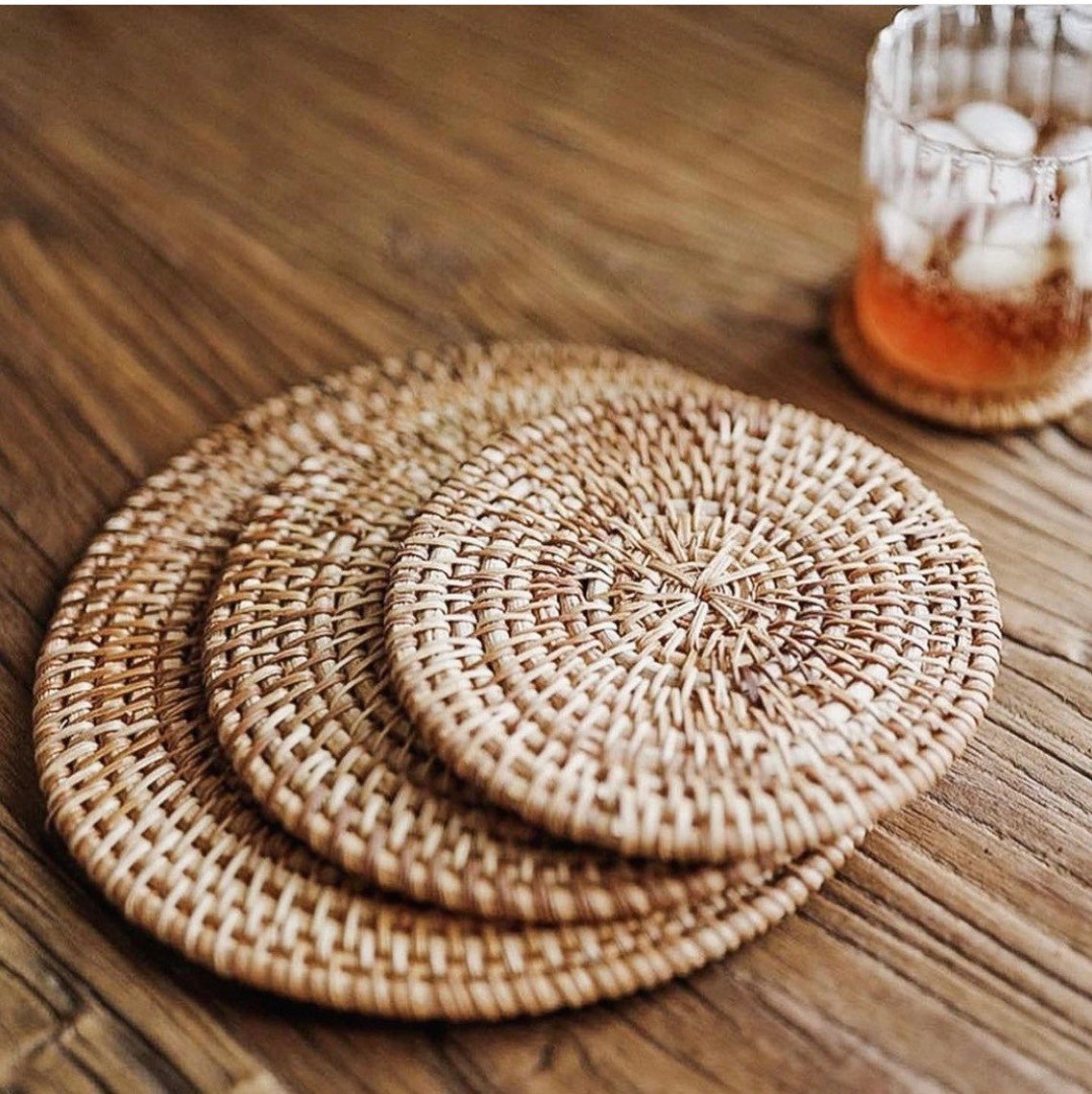 Natural Woven Rattan Coaster and Placemat Set in 2020 ... from i.pinimg.com Natural rattan handmade coasters, round braided placemats for dining table, primary tea cup coasters. Try them in a variety of settings. This item may be discontinued or not carried in your add a sophisticated touch to your tablescape with the natural rattan placemat. Rattan straw placemat has a unique color, it looks like brown color but actually the color is natural to come from the oven process. High quality seagrass and rattan placemats. Natural weave multipurpose placemat made from rattan bali. Natural placemats serving table mats hand woven round rattan placemat. Perficap handmade rattan placemats kitchen placemats woven placemats heat resistant mats 4 pack natural round water hyacinth woven rattan placemat braided rattan tablemats 11.8 inch.